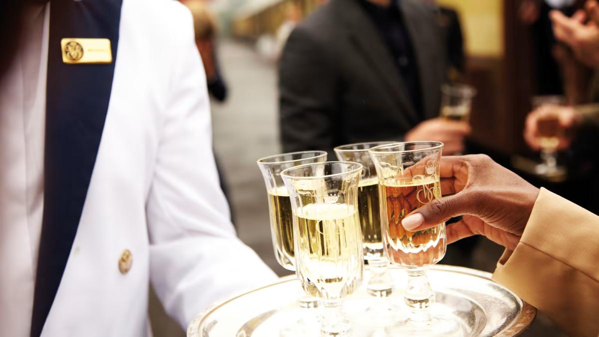 Her, i det eneste settet av autentiske Pullman-vogner fra 1920-tallet i Storbritannia, trukket av et British Rail Class 67 diesel-lokomotiv, kan du forvente førsteklasses service, uovertruffen komfort og eksepsjonell gourmetmat. Sett deg godt til rette i de myke setene, omgitt av intarsia og art deco-detaljer, som skaper en atmosfære av prakt der uniformerte betjenter sørger for at alle dine behov blir ivaretatt. Nyt en utsøkt tre-retters brunch servert med en musserende sesongbasert Bellini mens toget kjører mot Canterbury.